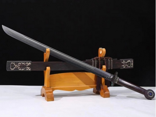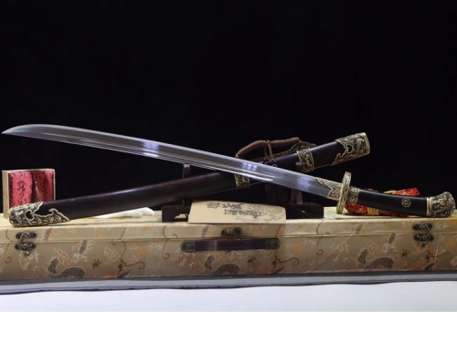 红木花纹钢龙虎刀