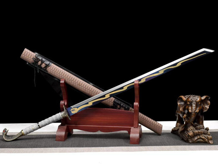 商品属性 [总长] 110cm [刃长] 74cm [柄长] 30cm [刃宽] 3.8cm [刃厚] 0.7cm [硬度] 58HRC [刃材] 锰钢 [鞘材] 硬木包皮 [装具] 铜锌合金 [工艺] 淬火(油)—回火 [锻打程度] 十二道纯手工研磨 [赠品] 锦盒-刀油-收藏证书-刀架 [重量] 1.7kg